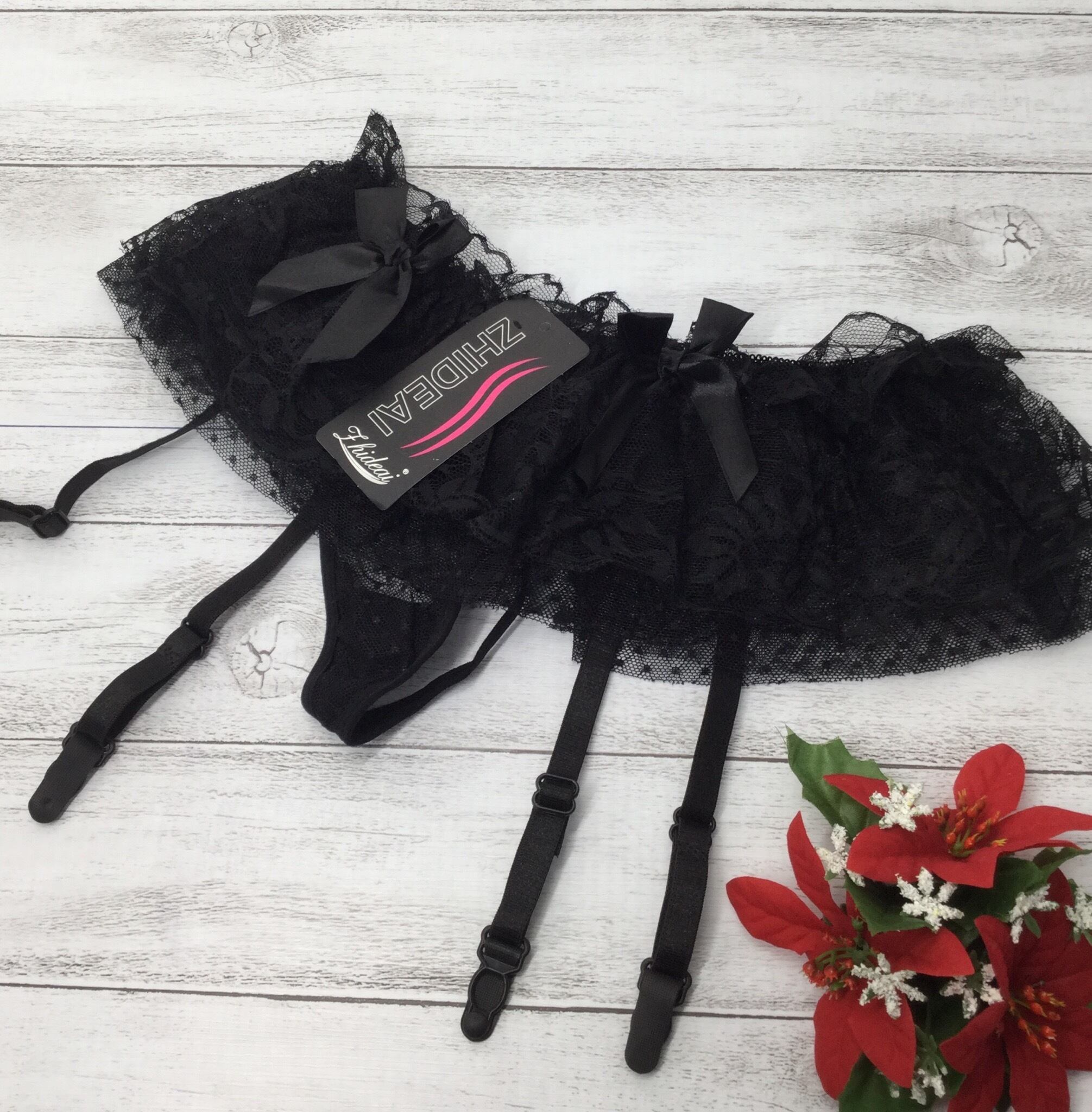 リボン付きガーターベルト4色 二枚重ね ストッキングに