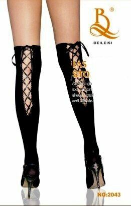BEILEISI-2043 後ろ編み上げニーハイストッキング 黒色