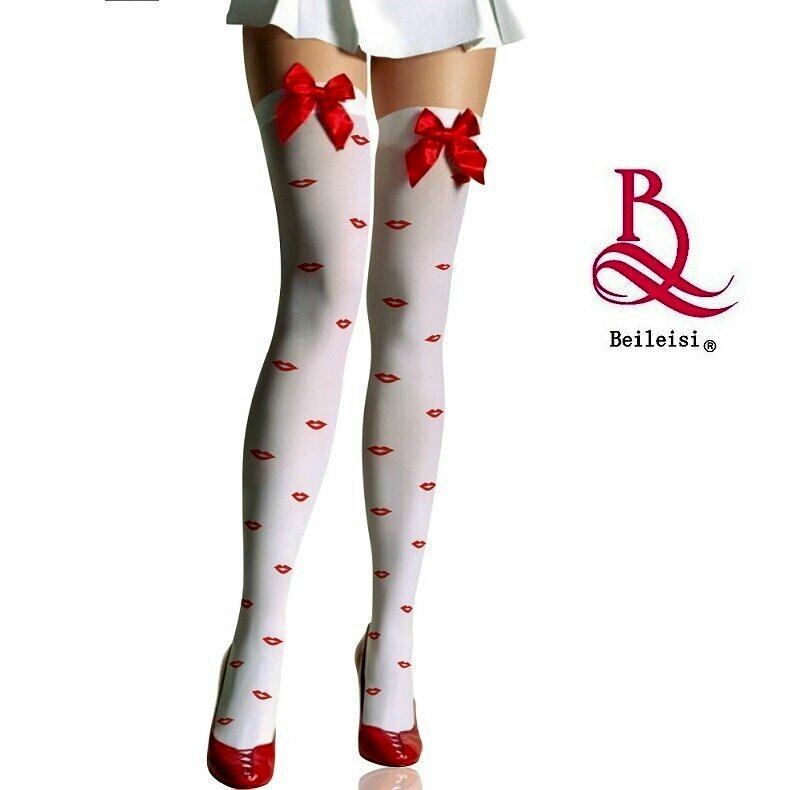 BEILEISI-2051 キスマーク柄のニーハイストッキング 白色